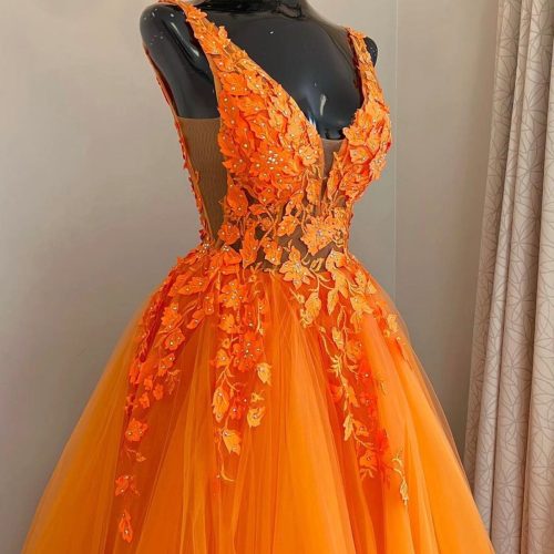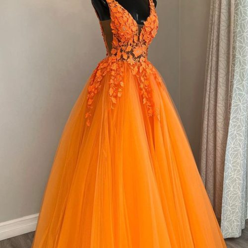 This Orange V-Neck Lace Long Prom Dresses, A-Line Evening Party Dresses is perfect for any formal event. The A-Line design combined with the floor-length silhouette creates an elegant timeless look. Its orange shade is perfect for making a statement. Perfect for prom or a special occasion. Product DetailSilhouette:A-LineMaterial:Tulle, LaceWaist: NaturalBack Details:ZipperLength: Floor LengthLining: Fully LinedBuilt-In…