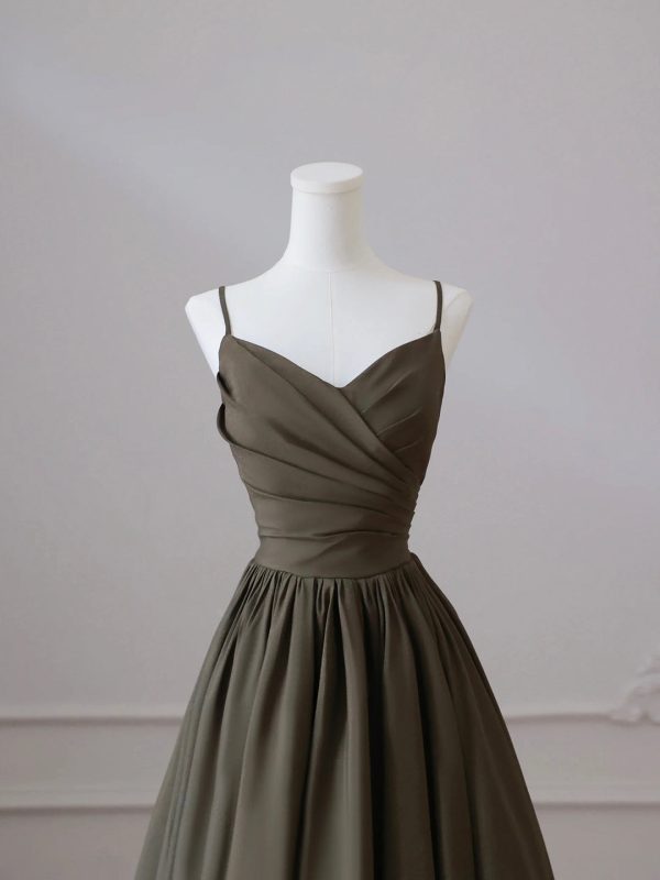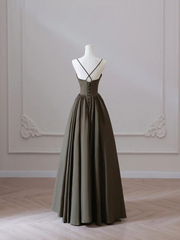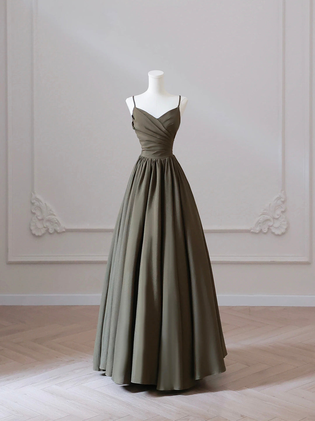 Simple V-neck Spaghetti Strap Floor Length Prom Dress, A-Line Backless Evening Party Dress